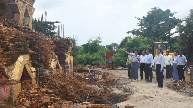 သာသနာရေးနှင့်ယဉ်ကျေးမှုဝန်ကြီးဌာန ပြည်ထောင်စုဝန်ကြီး ဦးတင်ဦးလွင်သည် သာသနာရေးနှင့် ယဉ်ကျေးမှုဝန်ကြီးဌာန အမြဲတမ်းအတွင်းဝန် ဦးမြင့်ဦး၊ ရှေးဟောင်းသုတေသနနှင့် အမျိုးသားပြတိုက်ဦးစီးဌာနမှ ညွှန်ကြားရေးမှူးချုပ်နှင့် တာဝန်ရှိ သူများလိုက်ပါလျက် ၁၆-၈-၂၀၂၅ ရက်နေ့၊ နံနက်ပိုင်းတွင် ငလျင်ဒဏ်ကြောင့် ထိခိုက်ပျက်စီးခဲ့သည့် တပ်ကုန်းနှင့် ကျောက်ဆည်ဒေသတို့ရှိ ရှေးဟောင်းအဆောက်အအုံ၊ စေတီ၊ ပုထိုးများ ပြန်လည် ပြုပြင်ထိန်းသိမ်းနေမှုအခြေအနေများကို ကြည့်ရှုစစ်ဆေးခဲ့ပါသည်။