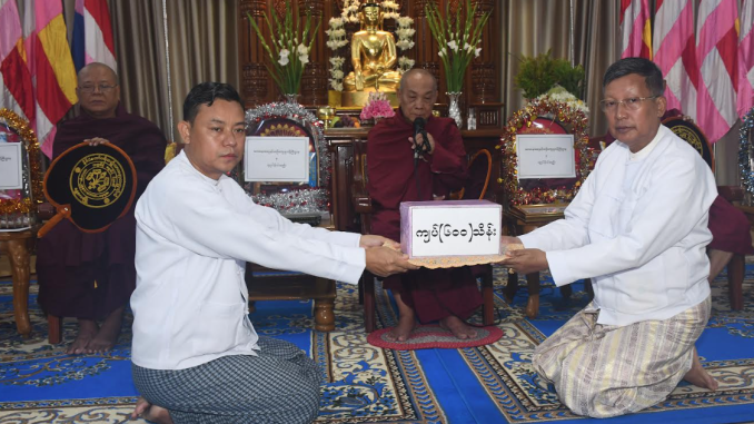 ဆက်လက်၍ ဆရာတော် သံဃာတော်များ ချီးမြှင့်တော်မူသော ပရိတ်တရားတော်များကို နာယူကြည်ညို၍ ပြည်ထောင်စုဝန်ကြီးနှင့် တာဝန်ရှိသူများက ဝါဆိုသင်္ကန်းနှင့် လှူဖွယ်ဝတ္ထု ပစ္စည်းများ ဆက်ကပ်လှူဒါန်းခဲ့ပါသည်။ ထို့နောက် ပြည်ထောင်စုဝန်ကြီးနှင့် ၇ ရက်သားသမီးများ၏ လှူဒါန်းငွေကျပ်သိန်း ၁၀၀ ကို ပြည်ထောင်စုဝန်ကြီးက လှူဒါန်းခဲ့ပြီး အလှူတော်ငွေများ လှူဒါန်း ရခြင်းနှင့်စပ်လျဉ်း၍ သာသနာရေးဆိုင်ရာများ လျှောက်ထားခဲ့ပါသည်။ ထို့နောက် ပြည်ထောင်စုဝန်ကြီးနှင့်အဖွဲ့သည် ညနေ ၁၇ ၁၅ အချိန်တွင် မဟာအောင်မြေ မြို့နယ်၊ မစိုးရိမ်တိုက်သစ်သို့ သွားရောက်၍ နိုင်ငံတော်သံဃမဟာနာယကအဖွဲ့၊ အကျိုးတော်ဆောင် ဘဒ္ဒန္တဝါသေဋ္ဌာဘိဝံသ ဆရာတော်ကြီးအား ဖူးမြော်ကြည်ညိုကာ ဝါဆိုသင်္ကန်းနှင့် နဝကမ္မ အလှူတော်ငွေ ဆက်ကပ်လှူဒါန်းခဲ့ကြောင်း သတင်းရရှိပါသည်။
