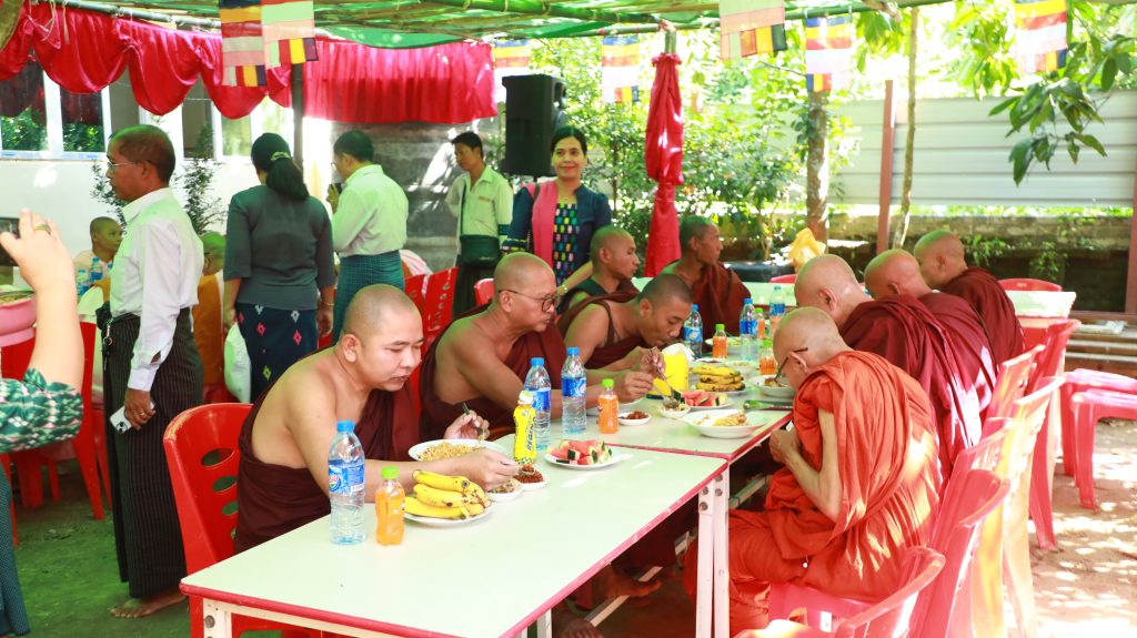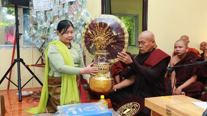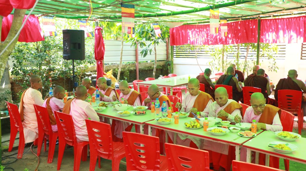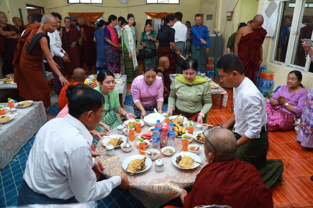 အခမ်းအနားသို့ အမျိုးသားယဉ်ကျေးမှုနှင့်အနုပညာတက္ကသိုလ်(ရန်ကုန်) ပါမောက္ခချုပ် ဒေါက်တာကေသီထွေး၊ ပါမောက္ခ/ဌာနမှူးများ၊ ဆရာ၊ ဆရာမများ၊ ဝန်ထမ်းများ၊ ဖိတ်ကြားထားသော ဧည့်သည်တော်များ တက်ရောက်ခဲ့ကြပါသည်။ အခမ်းအနားကို နမောတဿ(၃)ကြိမ်ရွတ်ဆို ဘုရားကန်တော့၍ အခမ်းအနားဖွင့်လှစ်ခြင်း၊ ပဲခူးတိုင်းဒေသကြီး၊ ဒေးစွန်ပါသာသနာ့နယ်မြေ၊ ဉာဏိကာရာမကျောင်းတိုက် ဆရာတော် ဘဒ္ဒန္တ ဉာဏိက ထံမှ ဧည့်ပရိသတ်များက ငါးပါးသီလခံယူဆောက်တည်ခြင်း၊ ဆရာတော် သံဃာတော် အရှင်သူမြတ်များက အန္တရာယ်ကင်းပရိတ်တရားတော်များ ရွတ်ဖတ် သရဇ္စျာယ်တော်မူခြင်း၊ ကထိန်လျာသင်္ကန်းနှင့် လှူဖွယ်ပစ္စည်းများ ဆက်ကပ်လှူဒါန်းခြင်း၊ ဆရာတော် ဆရာတော် ဘဒ္ဒန္တ ဉာဏိကထံမှ အနုမောဒနာတရားချီးမြှင့်ခြင်းနှင့် ရေစက်ချအမျှပေးဝေခြင်း၊ ဗုဒ္ဓသာသနံ စိရံတိဋ္ဌတု (၃)ကြိမ်ရွတ်ဆို၍ အခမ်းအနားကိုရုပ်သိမ်းခြင်း၊ သံဃာတော် (၇၀)ပါး တို့အား နေ့ဆွမ်းဆက်ကပ်လှူဒါန်းခြင်း၊ ဧည့်ပရိသတ်များအား နေ့လယ်စာဖြင့် ဧည့်ခံခြင်းတို့ကို ဆောင်ရွက်ခဲ့ပြီး နေ့လယ် (၁၂၀၀)နာရီတွင် အခမ်းအနားကို ရုပ်သိမ်းခဲ့ပါသည်။