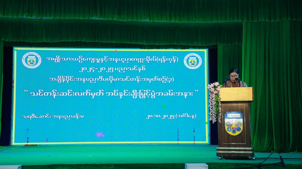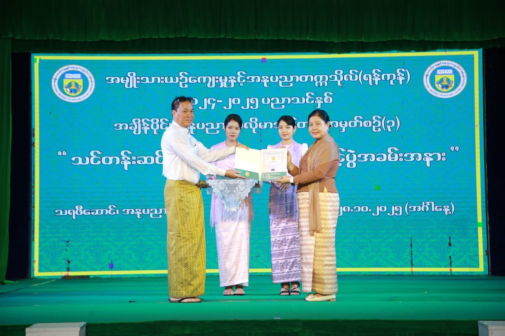 အမျိုးသားယဉ်ကျေးမှုနှင့်အနုပညာတက္ကသိုလ်(ရန်ကုန်)၊ လူ့စွမ်းအားအရင်းအမြစ်ဖွံ့ဖြိုးမှု အစီအစဉ်ဖြင့် အချိန်ပိုင်း အနုပညာ ဒီပလိုမာသင်တန်းများ၏ သင်တန်းဆင်း အောင်လက်မှတ် အပ်နှင်းချီးမြှင့်ပွဲအခမ်းအနားကျင်းပခြင်း