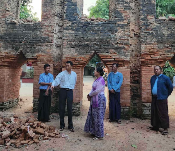 ဆက်လက်၍ သာသနာရေးနှင့်ယဉ်ကျေးမှုဝန်ကြီးဌာန ဒုတိယဝန်ကြီး ဒေါ်နုမြဇံသည် ငလျင်ကြောင့် ထိခိုက်ပျက်စီးခဲ့သည့် မဟာလောကမာရဇိန် ကုသိုလ်တော်ဘုရား ထိခိုက်ပျက်စီးမှု များကိုလည်းကောင်း၊ နန်းမြေဘုံသာ စံနန်းတော်ရာ စန္ဒာမုနိဘုရားနှင့် ဂန္ဓကုဋီတိုက်တို့၏ ထိခိုက်ပျက်စီးမှုများကို ဂေါပကအဖွဲ့မှ အများပြည်သူလှူဒါန်းမှုဖြင့် ဆောင်ရွက်နေစဉ် ဘုရားနှင့် ဗုဒ္ဓရုပ်ပွားတော်အကြား ယခင် ကနောင်မင်းသား အုတ်ဂူတည်ရှိသည့်နေရာတွင် ဘုရားပြုပြင်ရန် မြေကျင်းတူးရာမှ ကျင်းအတွင်း၌ အောက်ခံဖန်ကလပ်ပေါ်တွင် အဖုံးပါ ငွေဖရုံတုံးပုံစံ အိုးအတွင်း လူအရိုးအိုးဟု ယူဆရသော အရိုးစအနည်းငယ်နှင့် အံသွား(၁)ချောင်းတို့ကို တွေ့ရှိခဲ့သည့် နေရာတို့ကိုလည်းကောင်း ကြည့်ရှုစစ်ဆေးခဲ့ရာ ဂေါပကအဖွဲ့က ရှင်းလင်းတင်ပြကြပါသည်။ ဒုတိယဝန်ကြီးက စန္ဒာမုနိစေတီတော်အား မူလလက်ရာမပျက် ပြုပြင်ထိန်းသိမ်းသွားရန် လမ်းညွှန်မှာကြားခဲ့ပါသည်။