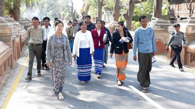 ဆက်လက်၍ သာသနာရေးနှင့် ယဉ်ကျေးမှုဝန်ကြီးဌာန ဒုတိယဝန်ကြီး ဒေါ်နုမြဇံသည် ငလျင်ကြောင့် ထိခိုက်ပျက်စီးခဲ့သည့် အင်းဝဗားကရာ သစ်သားဘုန်းတော်ကြီးကျောင်းကို ကြည့်ရှု စစ်ဆေးခဲ့ရာ ရှေးဟောင်းသုတေသနနှင့် အမျိုးသားပြတိုက်ဦးစီးဌာန ညွှန်ကြားရေးမှူးချုပ် ဒေါက်တာကျော်ဦးလွင်နှင့် တာဝန်ရှိသူများက ရှင်းလင်းတင်ပြကြပါသည်။ ဒုတိယဝန်ကြီးက အန္တရာယ်ရှိသော အုတ်တံတိုင်းအား အမြန်ဆောင်ရွက်ရန်၊ စောင်းနေသော ပြာသာဒ်ဆောင်များ ကို ပြန်လည်တည့်မတ်ရန် လမ်းညွှန်မှာကြားခဲ့ပါသည်။ ဆက်လက်၍ သာသနာရေးနှင့်ယဉ်ကျေးမှုဝန်ကြီးဌာန ဒုတိယဝန်ကြီး ဒေါ်နုမြဇံသည် ငလျင်ကြောင့်ထိခိုက်ပျက်စီးခဲ့သည့် လောကသရဖူဘုရား ထိခိုက်ပျက်စီးမှုများကို ကြည့်ရှု စစ်ဆေးခဲ့ရာ ရှေးဟောင်းသုတေသနနှင့် အမျိုးသားပြတိုက်ဦးစီးဌာန ညွှန်ကြားရေးမှူးချုပ် ဒေါက်တာကျော်ဦးလွင်နှင့် ဂေါပကအဖွဲ့တို့က ရှင်းလင်းတင်ပြကြပါသည်။ ဒုတိယဝန်ကြီးက ငလျင်ကြောင့် ပြိုကျခဲ့သော ဂန္ဓာကုဋီတိုက်အား အသစ်ပြန်လည်ဆောက်လုပ်ပါက Steel Structure အသုံးမပြုရန်နှင့် တောင်သမန်ကျောက်တော်ကြီးဘုရားရှိ နံရံဆေးရေးပန်းချီ အထောက်အထား အတိုင်းဆောင်ရွက်ရန်၊ ဘုရားဝင်းထဲတွင် ထေရဝါဒဗုဒ္ဓသာသနာတော်နှင့် မအပ်စပ်သည့် ရုပ်တု များကို ထပ်မံတိုးပွားခြင်းမပြုလုပ်ရန်၊ ရဲလောင်း(ဆွမ်းလောင်းဇရပ်)တွင်ထားရှိသော ဗုဒ္ဓဘာသာနှင့် မအပ်စပ်သည့်ရုပ်တုများကို ဖယ်ရှားပေးရန်လမ်းညွှန်မှာကြားခဲ့ပြီး ဧည့်သည်တော်မှတ်တမ်းတွင် လက်မှတ်ရေးထိုးခဲ့ကြောင်း သတင်းရရှိပါသည်။