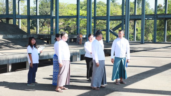 ရှေးဦးစွာ ပြည်ထောင်စုဝန်ကြီးနှင့်အဖွဲ့အား ဆောက်လုပ်ရေးရှင်းလင်းဆောင်တွင် Myanmar Land & Development Ltd ဆောက်လုပ်ရေးကုမ္ပဏီမှ Project Director ဒေါ်ယုယုနိုင်က နိုင်ငံတကာအဆင့်မီ အနုပညာဗဟိုဌာန(ရန်ကုန်) တည်ဆောက်ရေးစီမံကိန်း အား ၂၀၂၄ -၂၀၂၅ ခု ၊ ဘဏ္ဍာရေးနှစ်တွင် Site Clearing Work ၊ RC Structure နှင့်ပတ်သက် သော သန့်ရှင်းရေးလုပ်ငန်းများ၊ RC Wall နံရံအက်ကွဲကြောင်းများအား ပြုပြင်ဖာထေးခြင်း၊ တိုင် နှင့် နံရံများ အချောကိုင်ခြင်း၊ ငြမ်းဆင်ခြင်းနှင့် ရေလုံဆေးသုတ်ခြင်း၊ Steel Structure သန့်ရှင်း ရေးနှင့် ဆီဆေးသုတ်ခြင်းလုပ်ငန်း၊ကြမ်းခင်းပြုပြင်ရန် လိုအပ်သော Basement အထပ် တွင် ရှိသော နွံများအား ဖယ်ရှားခြင်းနှင့် ကြမ်းခင်း ပြုပြင်ခြင်း၊ 1250KVA Transformer (၁)လုံးနှင့် 33KV လိုင်း (၀.၅၇)မိုင်၊ ၃၃/၀.၄ ကေဗွီ ချိတ်ဆက်ဆောင်ရွက် ခြင်းနှင့် 1250KVA ခွဲရုံ (၁)ရုံ တည်ဆောက်ခြင်းလုပ်ငန်း၊ Gal (30000) Ground Tank (၂)လုံး တည်ဆောက်ခြင်းလုပ်ငန်း၊8” Tube Well နှင့် Submersible Pump (5HP) (၂)လုံး တူးဖော်ခြင်းလုပ်ငန်း စသည့် လုပ်ငန်း ၇ ခုကို ဆောင်ရွက်ခဲ့ပြီးဖြစ်ပါကြောင်း၊ ယခုအခါ ဆက်လက်အကောင်အထည်ဖော် ဆောင်ရွက်မည့် လုပ်ငန်းများကို အပိုင်း ၃ ပိုင်းဖြင့် ဆောင်ရွက်သွားမည်ဖြစ်ပါကြောင်း၊ အပိုင်း(၁)အနေဖြင့် နိုင်ငံ တကာအဆင့်မီ အနုပညာဗဟိုဌာန(ရန်ကုန်) အဆောက်အအုံတွင် ဆက်လက်ဆောင်ရွက်ရမည့် ဘေးအကာ နံရံများ ကာရံခြင်း၊ ဆောင်ရွက်ရန် ကျန်ရှိနေသော Steel Column များ၊ အမိုး အသစ်မိုးခြင်း လုပ်ငန်းနှင့် အမိုးအဟောင်းများ ပြုပြင်ခြင်း လုပ်ငန်းများ ဆောင်ရွက်ခြင်းစသည့် လုပ်ငန်းများကို Power Point ဖြင့် ရှင်းလင်း တင်ပြခဲ့ပါသည်။