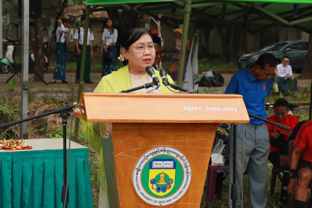 ဖွင့်ပွဲအခမ်းအနားတွင် ပါမောက္ခချုပ် ဒေါက်တာကေသီထွေးက အဖွင့်အမှာစကား ပြောကြားပါသည်။ ဆက်လက်၍ ပါမောက္ခချုပ်၊ ဒုတိယပါမောက္ခချုုပ်(စီမံ)နှင့် ဒုတိယပါမောက္ခချုပ် (သင်ကြား)တို့က ဘောလုံးပြိုင်ပွဲကိုဖဲကြိုးဖြတ်၍ ဖွင့်လှစ်ပေးပြီး စုပေါင်းမှတ်တမ်းတင် ဓာတ်ပုံရိုက်ကူးကြပါသည်။ ဆက်လက်၍ ဘောလုံးပြိုင်ပွဲကိုကျင်းပပြုလုပ်ရာ အမျိုးသားဘောလုံး ပြိုင်ပွဲ ပွဲစဉ်(၁) ဂီတအသင်းနှင့် ရုပ်ရှင်နှင့်ပြဇာတ်အသင်းတို့ ယှဉ်ပြိုင်ခဲ့ကြပါသည်။ ဘောလုံးပြိုင်ပွဲ၌ အမျိုးသားအသင်းတွင် ဂီတ၊ ရုပ်ရှင်နှင့်ပြဇာတ်၊ ပန်းပု၊ သဘင်၊ ပန်းချီအသင်းတို့ ပါဝင်ယှဉ်ပြိုင်မည် ဖြစ်ပြီး အမျိုးသမီးအသင်းတွင် ညွန့်ပေါင်း၊ သဘင် နှင့် မဉ္ဇူအသင်းတို့ ပါဝင်ယှဉ်ပြိုင်မည်ဖြစ်ပါသည်။