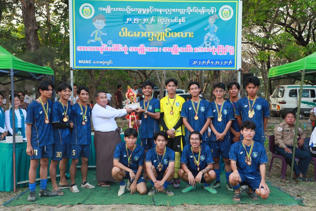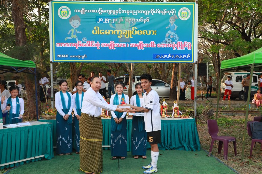 ထို့နောက် ဆုပေးပွဲကိုကျင်းပရာ ဒုတိယပါမောက္ခချုပ်(သင်ကြား) ဦးခိုင်ထွန်းက တစ်ဦးချင်းဆုရရှိကြ သော အားကစားသမားများကိုလည်းကောင်း၊ ဒုတိယပါမောက္ခချုပ်(စီမံ) ဦးလှခိုင်က အမျိုးသား ဒုတိယဆုရ ပန်းပုအသင်းနှင့် တတိယဆုရ ပန်းချီအသင်းကိုလည်းကောင်း၊ ဒုတိယပါမောက္ခချုပ်(သင်ကြား) ဦးခိုင်ထွန်းက အမျိုးသမီး ဒုတိယဆုရ ညွန့်ပေါင်းအသင်းနှင့် တတိယဆုရ မဉ္ဇူအသင်းကိုလည်းကောင်း၊ ပါမောက္ခချုပ် ဒေါက်တာကေသီထွေးက တံခွန်စိုက် ပထမဆုရ အမျိုးသား ရုပ်ရှင်နှင့်ပြဇာတ်အသင်းနှင့် တံခွန်စိုက် ပထမဆုရ အမျိုးသမီး သဘင်အသင်းကိုလည်းကောင်း ဆုများအသီးသီးပေးအပ်ချီးမြှင့်ခဲ့ပါသည်။
