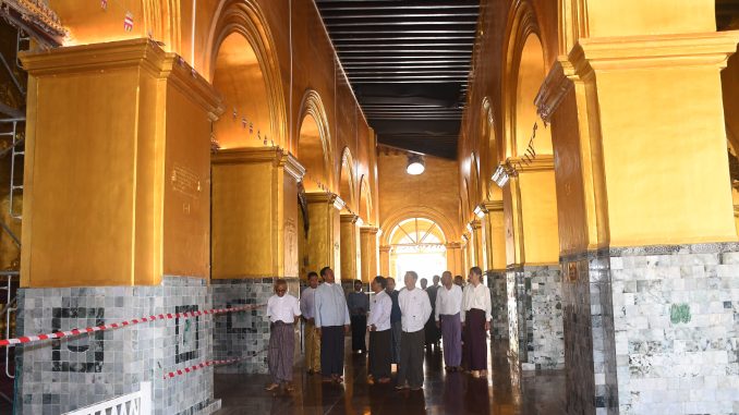 ဟိုတယ်၊ ခရီးသွားလာရေးနှင့်ယဉ်ကျေးမှုဝန်ကြီးဌာန ပြည်ထောင်စုဝန်ကြီး ဦးမောင်မြင့်သည် ဝန်ကြီးဌာနမှ ညွှန်ကြားရေးမှူးချုပ်များ၊ တာဝန်ရှိသူများနှင့်အတူ ၂၄-၄-၂၀၂၆ ရက်နေ့၊ နံနက်ပိုင်းတွင် မန္တလေးဒေသရှိ အရိပ်မထွက်ဘုရား၊ ဘုရားနီဘုရား၊ မဟာမင်းထင်သစ်သား ဘုန်းကြီးကျောင်း၊ မဟာစန္ဒာမုနိဘုရားနှင့် မဟာမုနိဘုရားကြီးတို့ မန္တလေးငလျင်ကြီးကြောင့် ထိခိုက်ပျက်စီးမှုနှင့် ပြုပြင်နေမှုများအား ကွင်းဆင်း ကြည့်ရှုခဲ့ပါသည်။