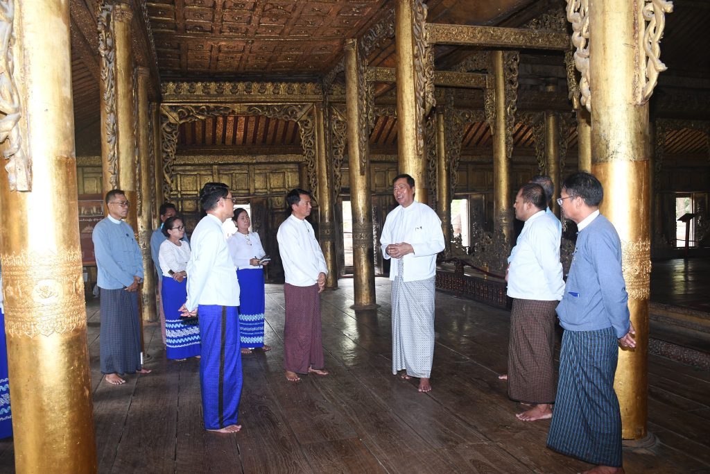 ဟိုတယ်၊ ခရီးသွားလာရေးနှင့်ယဉ်ကျေးမှုဝန်ကြီးဌာန၊ ပြည်ထောင်စုဝန်ကြီး ဦးမောင်မြင့် အမျိုးသားယဉ်ကျေးမှုနှင့်အနုပညာတက္ကသိုလ်(မန္တလေး)က ဖွင့်လှစ်သင်ကြားမည့် “နွေရာသီ အခြေခံ ဂီတ၊ အဆို၊ အကနှင့် ပန်းချီ၊ ပန်းပုသင်တန်း” ဖွင့်ပွဲအခမ်းအနားသို့ တက်ရောက်ပြီးရှေးဟောင်းအဆောက်အဦများပြုပြင်ပြီးစီးမှုအခြေအနေကို လိုက်လံကြည့်ရှုစစ်ဆေး